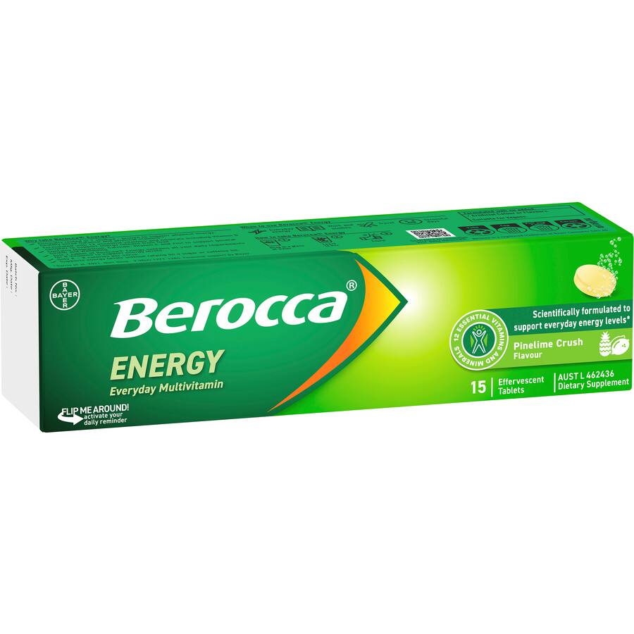 Berocca Energy Effervescent Tablets Pinelime Crush Flavour