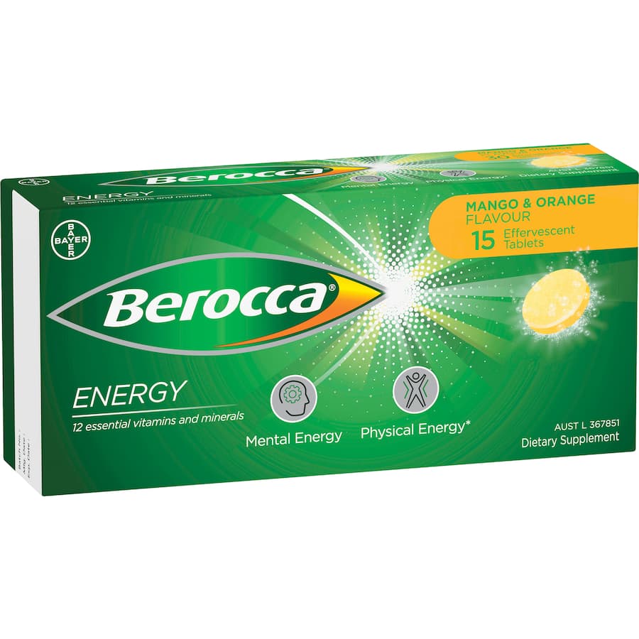 Berocca Energy Mango & Orange Flavour Effervescent Tablets